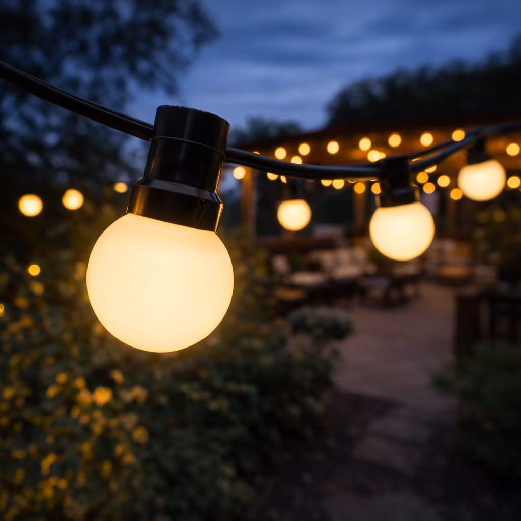 Ljusslinga utomhus med fasta lampor - Mjölkvit - 10m - 97m - utbyggbara