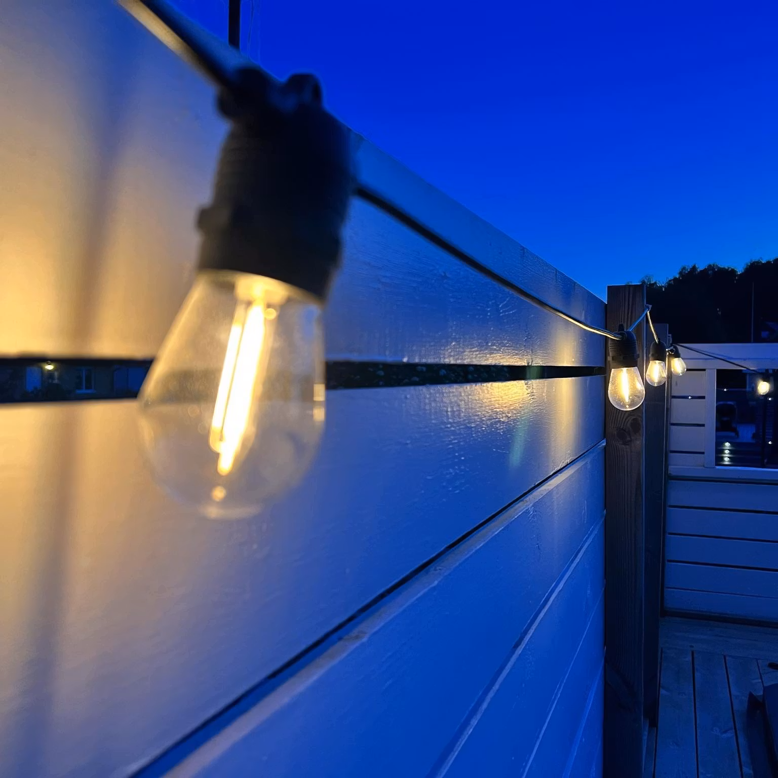 Lysslyngen er robust og holdbar, så du kan nyde din belysning i mange sommeraftener fremover. Den er let at installere og giver et smukt lys, der skaber en hyggelig atmosfære i dit udendørs miljø. LED-pærer er inkluderet i pakken, og de er også udskiftelige, så hvis en går i stykker, skal du blot udskifte den i stedet for at skulle smide hele lysslyngen væk, som du skal med billigere varianter. Vi sælger erstatningspærer her.
