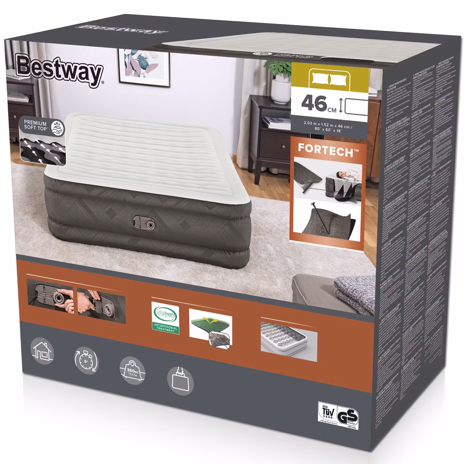 Med Fortech ™ -säng från Bestway® vaknar du utvilad. Ytan är extra tålig men även mjuk och skön att sova i.